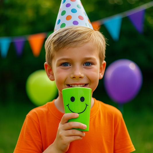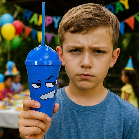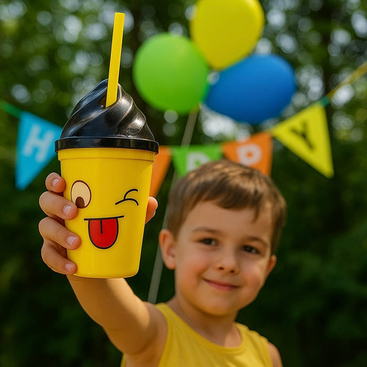 Pack 12 Vasos Plásticos Reutilizables Con Tapa Y Bombilla Para Niños Fiestas y Cumpleaños Emojis 450 ML