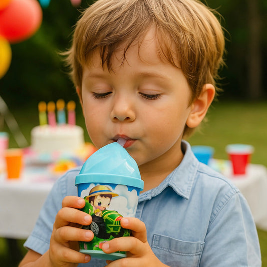 Pack 12 Vasos Plásticos Reutilizables Con Tapa Y Bombilla Para Fiestas y Cumpleaños Infantiles 250 ML