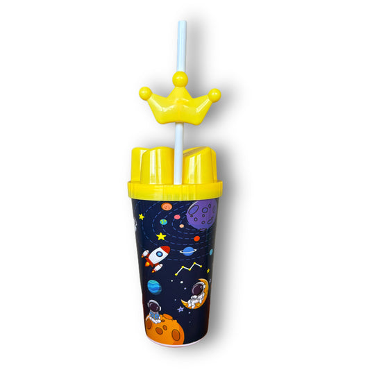 Pack 12 Vasos Plásticos Con Tapa Y Bombilla Para Niños Galaxia 600 ML